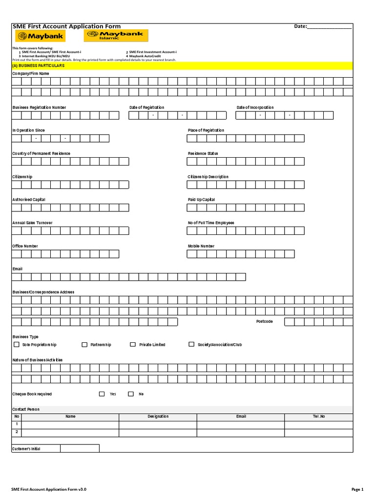 . This service is aimed to enhance the progress. Select I WANT TO APPLY NOW. MAYBANK AUTOCREDIT ACCOUNTS AND PAYMENT DETAILS A a citizen or resident of the United States Yes No SME First Account Application Form v31 Page 4.
