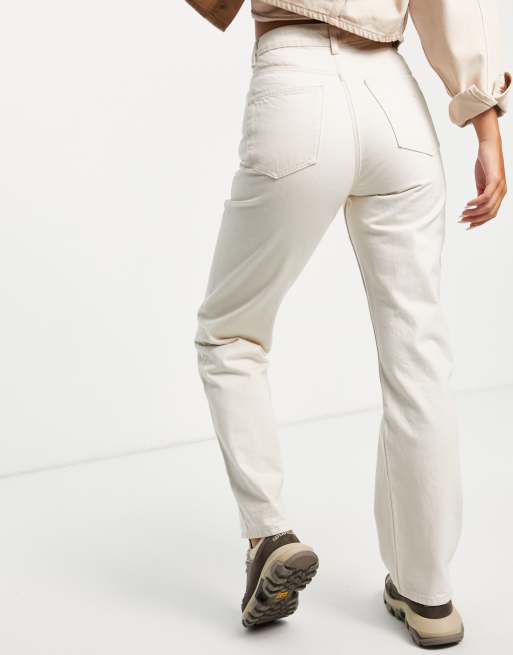 Weekday Rowe Organic Cotton High Waist Straight Leg Jeans In Tinted Ecru Asos